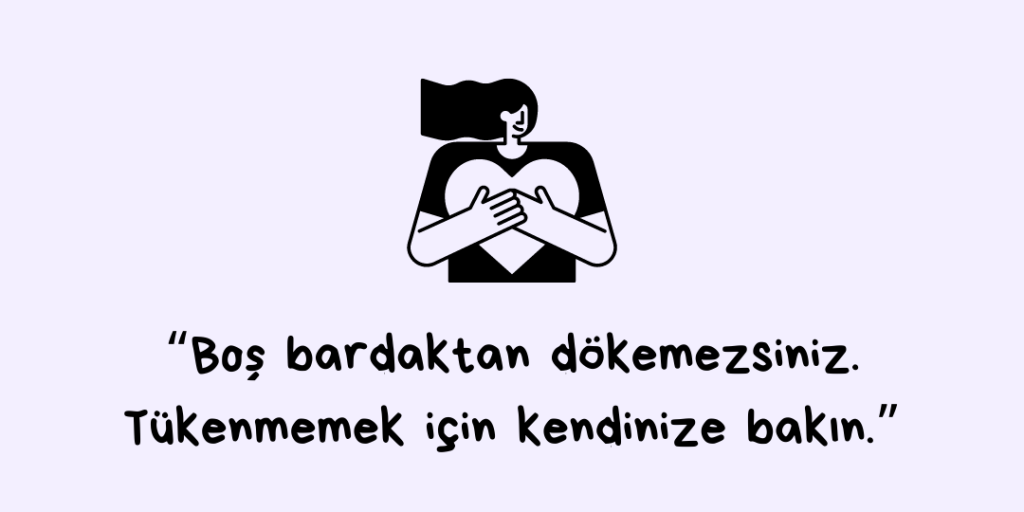 Zorlayıcı bir yaşam olayıyla baş etmeye çalışan birine destek olmanın sizin iyilik haliniz üzerinde yorucu etkileri olabilir. Bu etkiler mevcutken ona sağlıklı bir destek kaynağı olmanız sizin açınızdan oldukça zorlayıcıdır. Olabilecek en basit haliyle de olsa kendi iyilik halinize öncelik vermeniz kesinlikle şarttır. Uyku rutininiz, beslenmeniz, egzersiz ve sosyal ilişkilerinizi önemseyin. Kendinize küçük molalar verin. Sizin de destek alabileceğiniz güvendiğiniz biri, destek grupları yahut bir uzman olabilir. Birinin mücadelesine eşlik etmek sizin için de birtakım duyguları ve düşünceleri aktive hale getirecektir. Kendi duygularınız hakkında konuşacak güvenli ve besleyici kaynaklarınızın olması tükenmenizin önüne geçecektir.