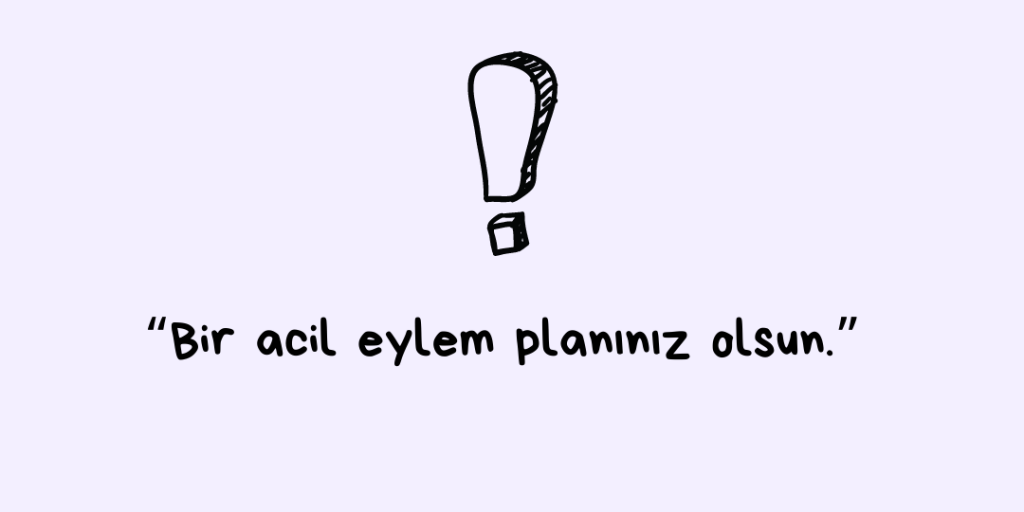 Destek olduğunuz kişinin güvenliği hakkında bir tehdit olması ihtimaline karşı basit ve net bir acil eylem planınızın olması önemlidir. İşlerin kötüleştiğini fark ettiğinizde herkesin güvenliği için sizin ve destek olduğunuz kişinin yapabileceği şeylere bilikte karar vererek yazabilirsiniz. Aramanız gerekebilecek numaralar olabilir; bütün bu numaraların da bulunduğu önceden konuşulmuş ve belki de yazılı bir planınızın olması sizin için bu süreci daha yönetilebilir kılabilir.